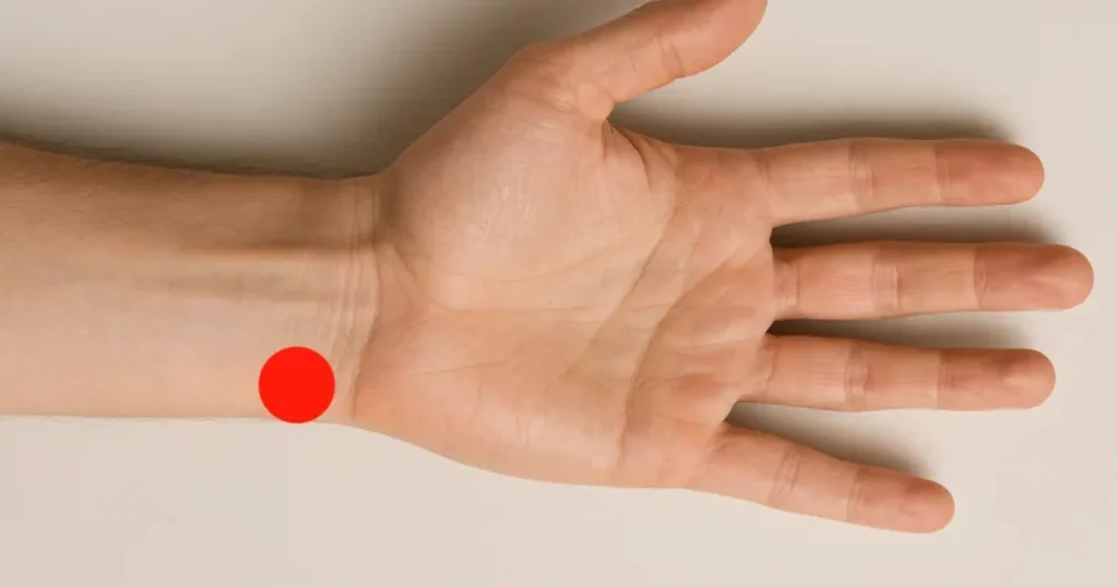Zur Linderung von Rückenschmerzen kannst du Druck auf den unteren Bereich der Handfläche ausüben. Dieser Punkt steht in Verbindung mit dem Lendenwirbelbereich und hilft, Spannungen im unteren Rücken zu lockern.