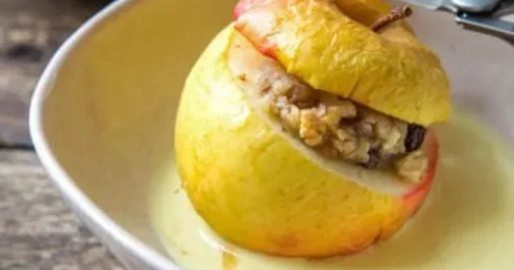 3️⃣ Backen: Die gefüllten Äpfel in eine feuerfeste Form setzen und bei 180 °C (Ober-/Unterhitze) etwa 25–30 Minuten backen, bis die Schale leicht aufplatzt und die Füllung duftet.