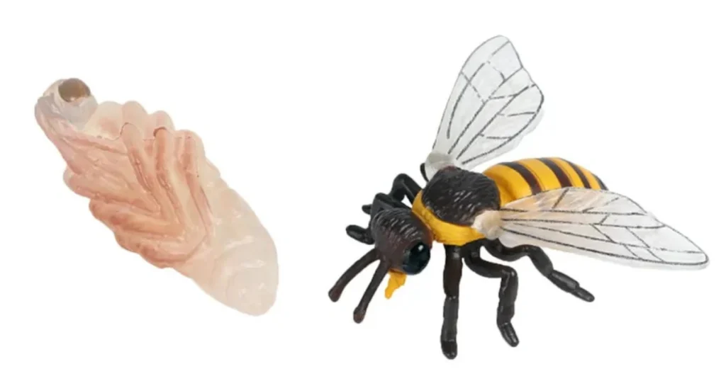 In der geschlossenen Zelle beginnt die Larve sich in eine Puppe zu verwandeln. Während dieser Phase verändert sich der Körper der Biene vollständig. Diese Phase kann einige Tage bis Wochen dauern, abhängig von der Temperatur und den Bedingungen im Bienenstock.