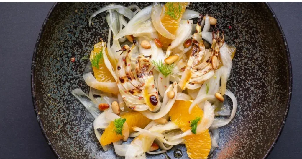 Dieser Fenchel‑Orangen‑Salat ist eine erfrischende Kombination aus knusprigem Fenchel und saftigen Orangen. Er eignet sich perfekt als leichte Mahlzeit oder stilvolle Beilage zu Fisch oder Geflügel. In wenigen Minuten zubereitet und voll im Geschmack.
