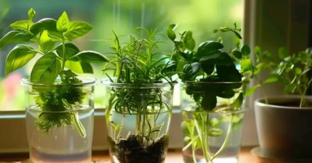 1. Kräuter vorbereiten: Schneide 10–15 cm lange Triebe von gesunden Pflanzen ab. Entferne die unteren Blätter, damit sie nicht im Wasser faulen.