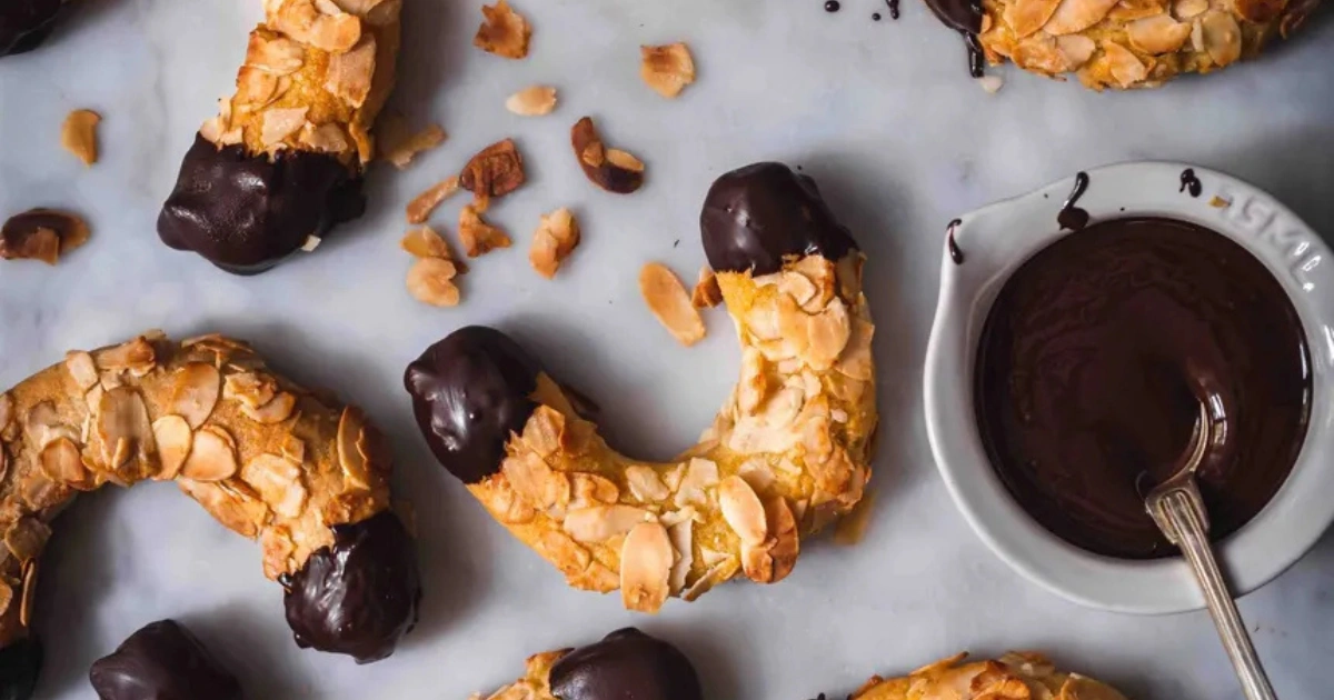 Mandelhörnchen Saftige Marzipanhörnchen mit Schokoladenspitzen