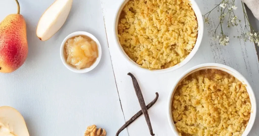 Birnen Crumble ein warmer Genuss mit knuspriger Haube