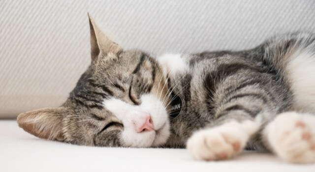 Wenn eine Katze seitlich ausgestreckt schläft, ist sie in einem besonders tiefen Schlaf.