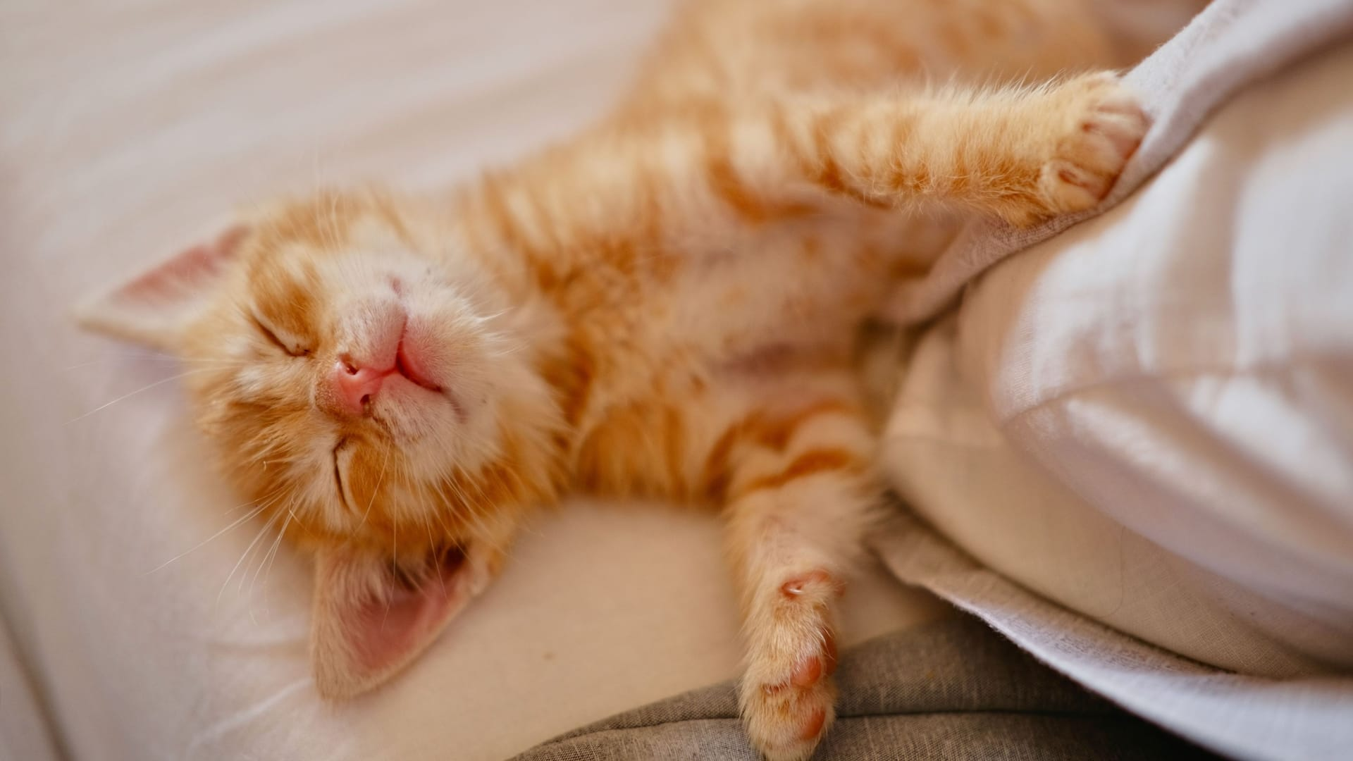 Wenn eine Katze auf der Seite liegt und vollständig ausgestreckt ist, befindet sie sich im Tiefschlaf.