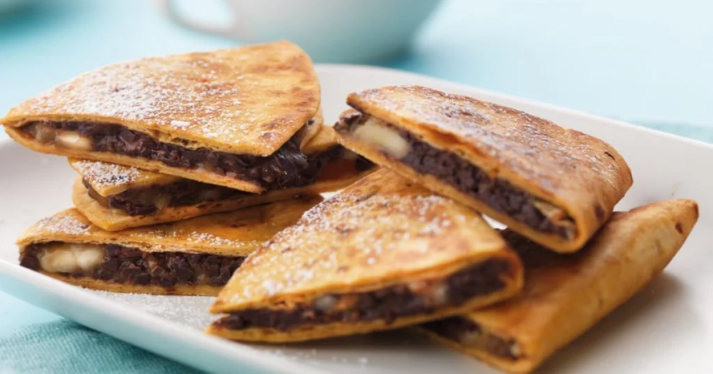Vegane Variante – pflanzliche Tortillas verwenden, Butter durch Kokosöl ersetzen und vegane Schokolade nutzen.