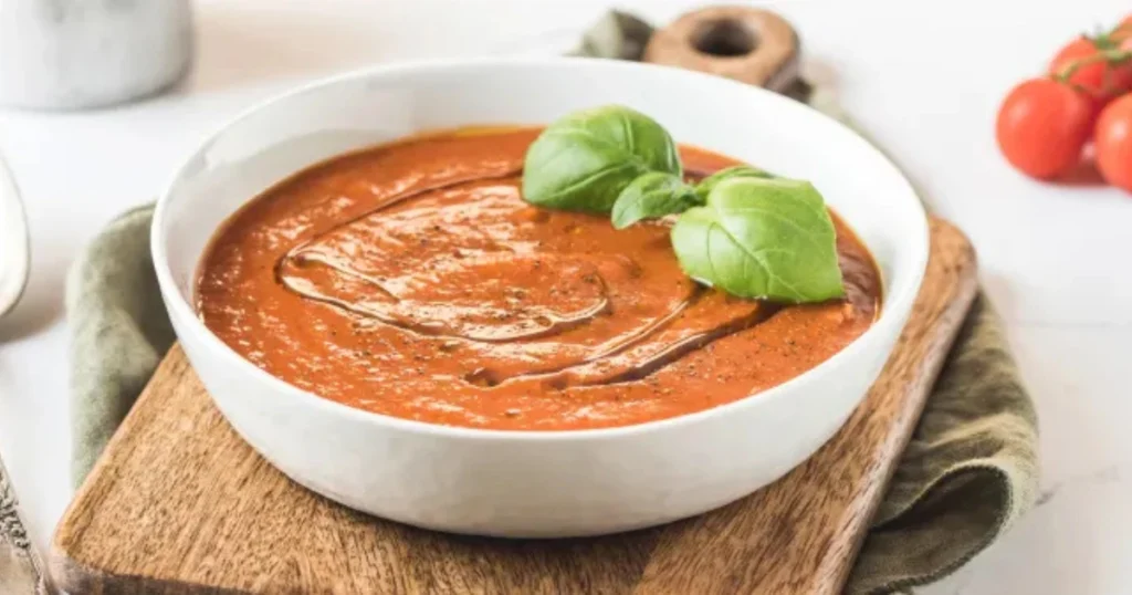 Verwandte Begriffe: Tomatensuppe Rezept, cremige Suppe, mediterrane Küche, gesunde Suppe, Basilikum Rezepte, vegane Suppe