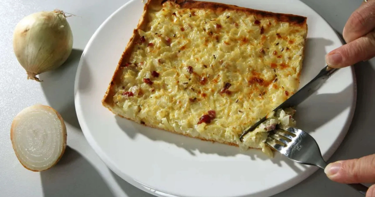 Zwiebelkuchen ist ein echter Klassiker der deutschen Küche – besonders beliebt in Süddeutschland, im Elsass und in der Pfalz. Mit seinem buttrigen Teig, der saftigen Zwiebel-Speck-Füllung und dem feinen Duft von Kümmel passt er perfekt zu einem Glas Federweißer oder einem frischen Weißwein.
